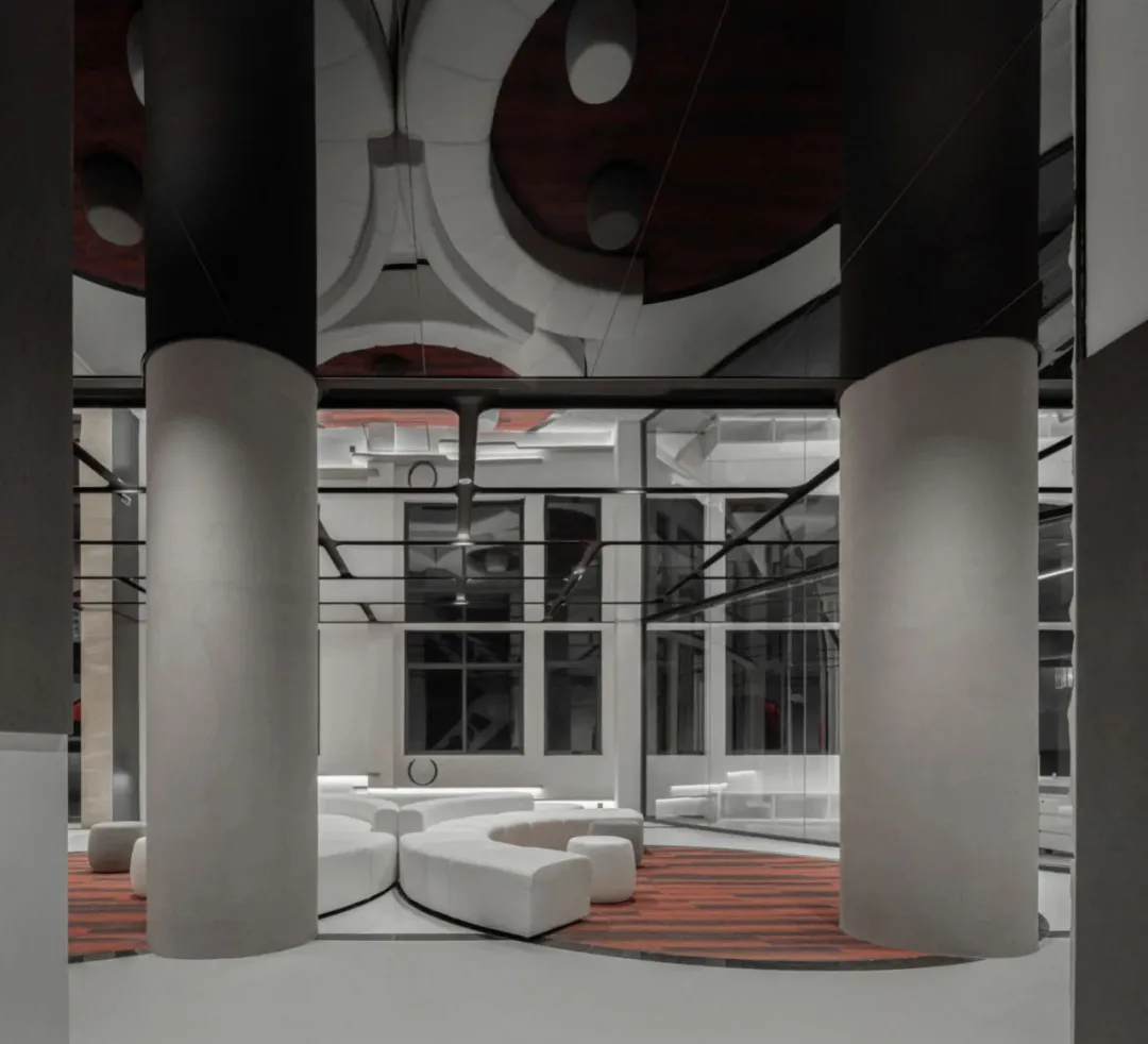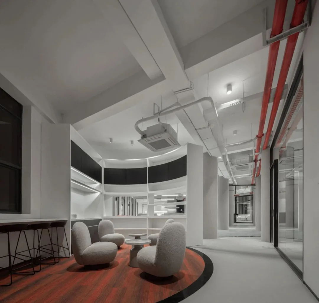 空间边界在秩序下却是自由的,也是设计师希望赋予的活性之一。经过设计的圆弧线条的形式赋予了原有的过于常规的建筑结构与空间新的生命力。